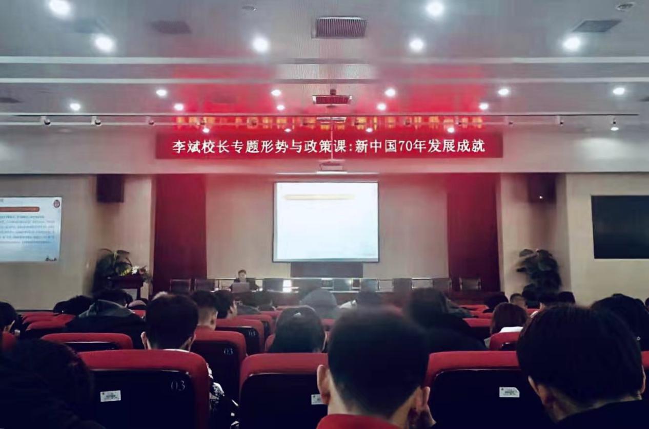 2019年1213日下午300校党委委员、副校长李斌在图书馆二楼B201报告厅为我院师生主讲政治理论课——新中国70年发展成就。