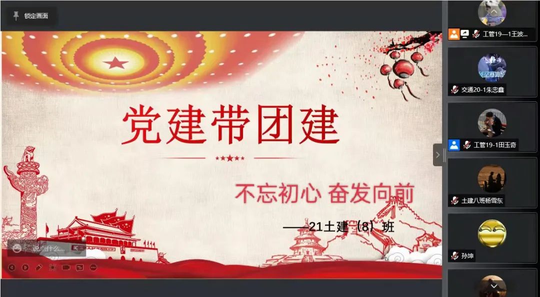 2022年4月,太阳集团tyc9728学生第二党支部在管科、土建团支部组织开展了以“不忘初心,奋发向前”为主题的“党建带团建”活动。其中,4月21日15:00,党员杨佳慧、郭鑫同志于腾讯会议为21级管理二班团支部开展此项活动;4月22日16:30,党员田玉奇、王波同志于腾讯会议为21级土建八班团支部开展此项活动。