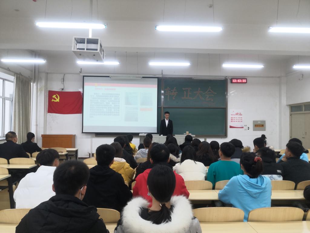 2021年12月8日中午12:40,太阳集团tyc9728学生第三党支部在逸夫楼G104举行预备党员转正大会,参加本次会议的有支部书记崔岩老师和全体党员。