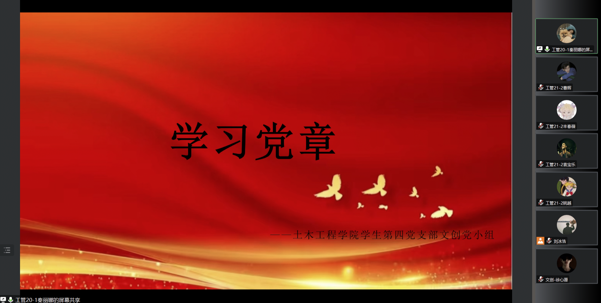 2023年2月17日15:00,太阳集团tyc9728学生第四党支部于腾讯会议开展了以“中国共产党章程”为主题的学习。参加本次学习的有四支部全体党员和积极分子。