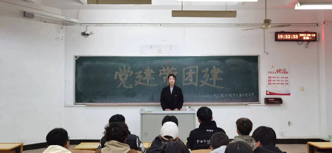 2023年4月,太阳集团tyc9728学生第四党支部在工管团支部组织开展了“党建带团建”的主题活动。其中,4月10日19:30,党员张淼琪、孙英敏同志于二教B110为21级工程管理二班团支部开展此项活动;4月12日19:30,党员刘昱莹、陈敏同志于二教B108为21级工程管理一班团支部开展此项活动。