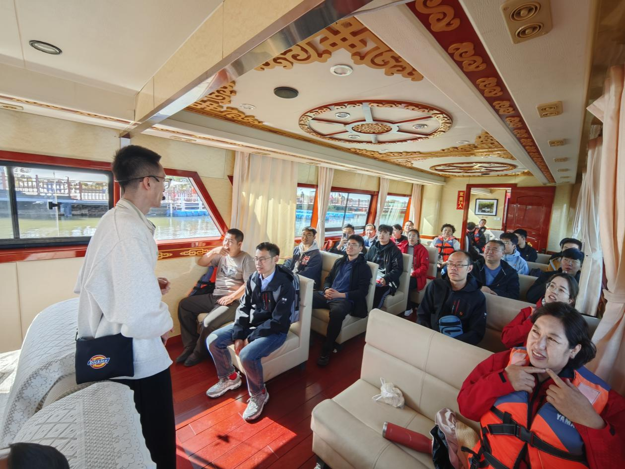 之后,党员们乘坐游轮,欣赏乌梁素海的水域全景。在游轮上,大家捕捉到了鸟儿在浪花里捕鱼的精彩瞬间,感受到了大自然的神奇与魅力,同时深刻领悟了习近平总书记提出的“用心治理、精心呵护,一以贯之、久久为功”的生态治理理念。