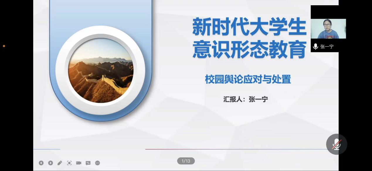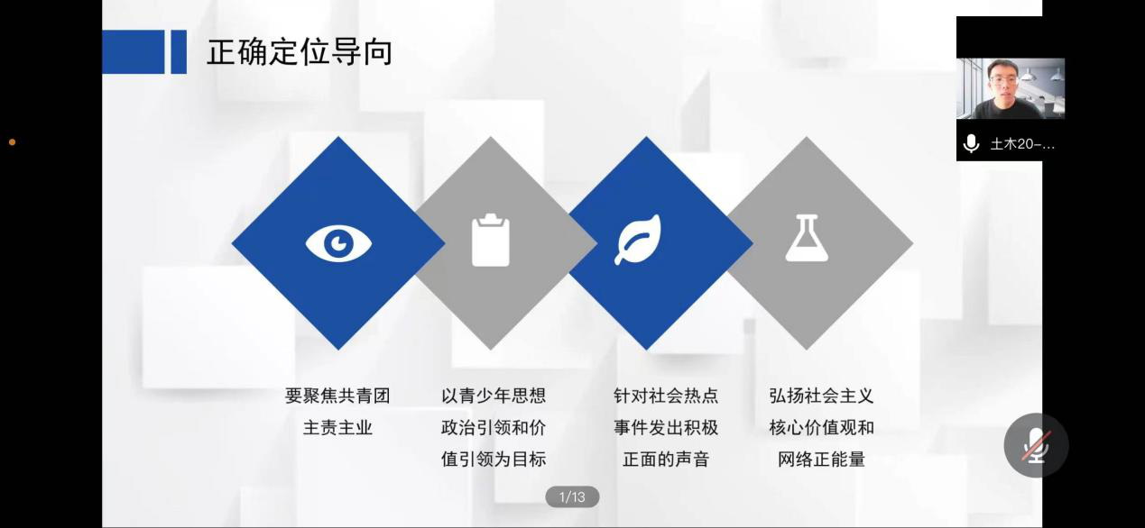 互联网日益成为新闻舆论独立源头,网络不再只是一个虚拟的世界,它真真实实地渗透、影响并干预到我们的现实生活,因此,网络舆论需要一个规范来监督和引导,而不是对网络和网民加以控制。为引导同学们做好共青团网络新媒体运营管理与检测基础性工作,充分发挥网络阵地传播先进文化的重要契机,我院团总支于2022年4月30上午10:00通过腾讯会议开展了以“面对网络舆论,坚持理性思考”为主题的舆论监测学习。