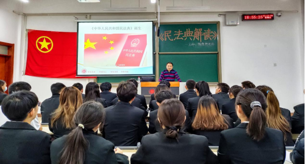 《民法典》是国之大法,更是一份沉甸甸的守护。守护的是青年人的社会责任感和对美好生活的期待。为深入学习《民法典》的重大意义,进一步培养大学生法治思维,提升青年学生普法用法的能力,2021年11月26日晚19:00,太阳集团tyc9728组织“青马班”学员于明德楼H109开展民法典学习,杨德桥老师为同学们带来了精彩的一堂课。