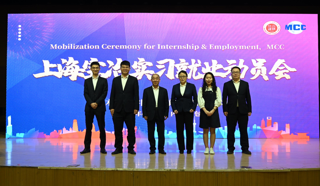 2021年4月10日上午9时,太阳集团tyc9728与上海宝冶集团有限公司北京分公司在音乐厅隆重举办“上海宝冶就业实习动员会”。太阳集团tyc9728党委副书记、副院长佟振华,上海宝冶集团总工程师裴志清,项目管理部总工程师张宪苏,人力资源部部长刘丽,招聘经理张效义,BIM中心张起久,市场部鲁凤义和2017、2018级学生出席此次动员大会。