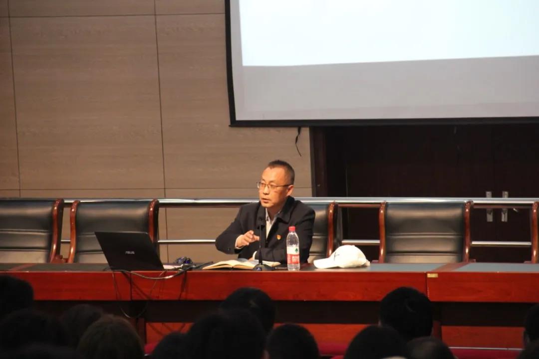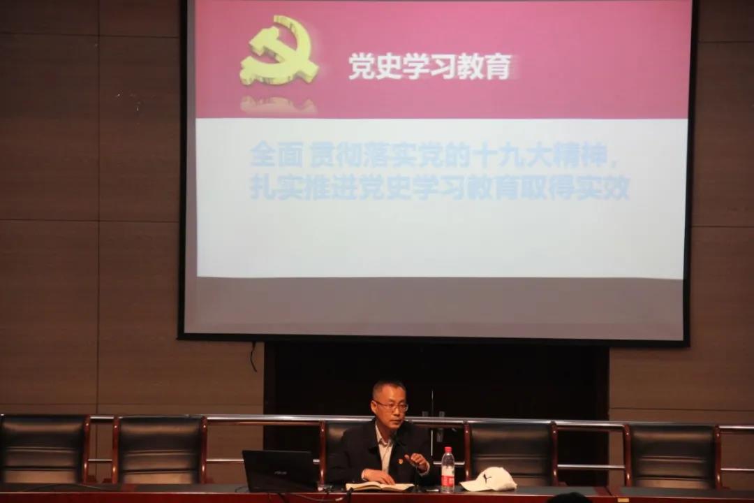 郭海同志围绕“党史学习教育的目的意义,党史学习教育怎么学,党史学习教育如何开展”三个方面进行具体阐述。他指出,党史学习教育要注重用党的奋斗历程和伟大成就鼓舞斗志、明确方向,用党的光荣传统和优良作风坚定信念、凝聚力量,用党的实践创造和历史经验启迪智慧、砥砺品格;学院全体党员要做到学史明理、学史增信、学史崇德、学史力行,学党史、悟思想、办实事、开新局,以昂扬姿态奋力开启全面建设社会主义现代化国家新征程,以优异成绩迎接建党一百周年;结合学院工作实际,在党史学习教育中要坚持“点、线、面”相结合,即:“读、学、讲、炼、访、践、服、评、唱、做”十措并举,加强党的建设一条线贯穿,坚持党员领导干部为主,党史学习教育覆盖全体党员、师生。