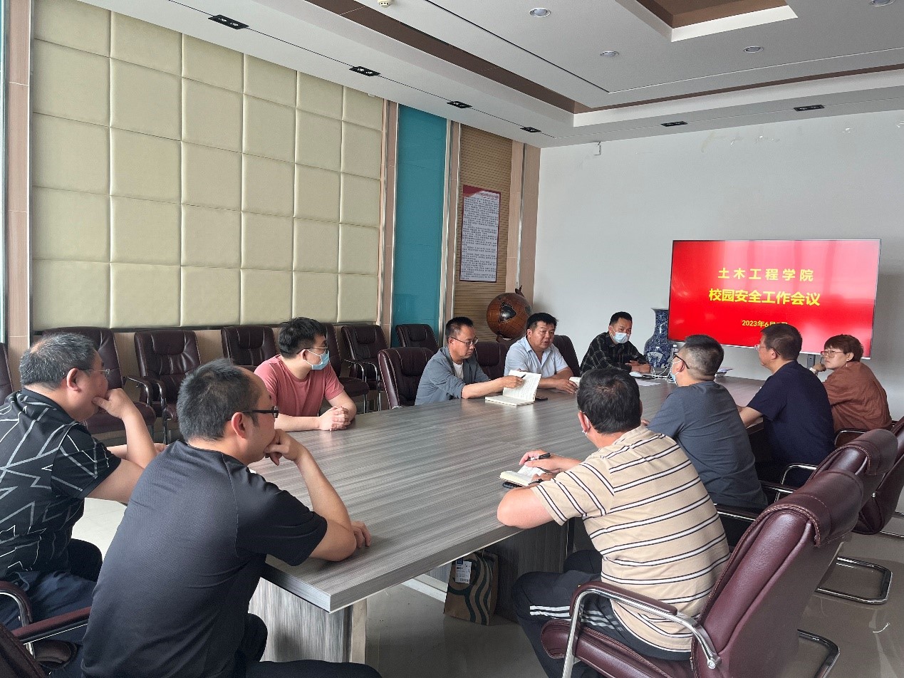 2023年6月5日中午,太阳集团tyc9728校园安全会议在逸夫楼B502会议室召开,会议采用线上线下相结合的形式。学院党委班子成员,行政人员,各科室负责人,系主任及全体班主任老师参加会议。