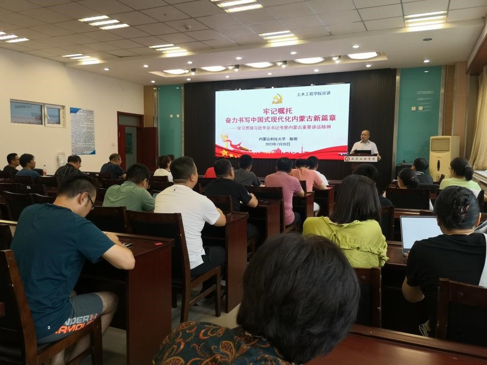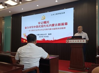 为全面深入学习贯彻习近平总书记考察内蒙古重要讲话精神,扎实推进学习宣传贯彻工作,2023年7月20日16:30,校党委委员、副校长陈明于逸夫楼B404开展了以牢记嘱托奋力书写中国式现代化内蒙古新篇章——学习贯彻习近平总书记考察内蒙古重要讲话精神为主题的宣讲活动,太阳集团tyc9728全体教职工参加活动。