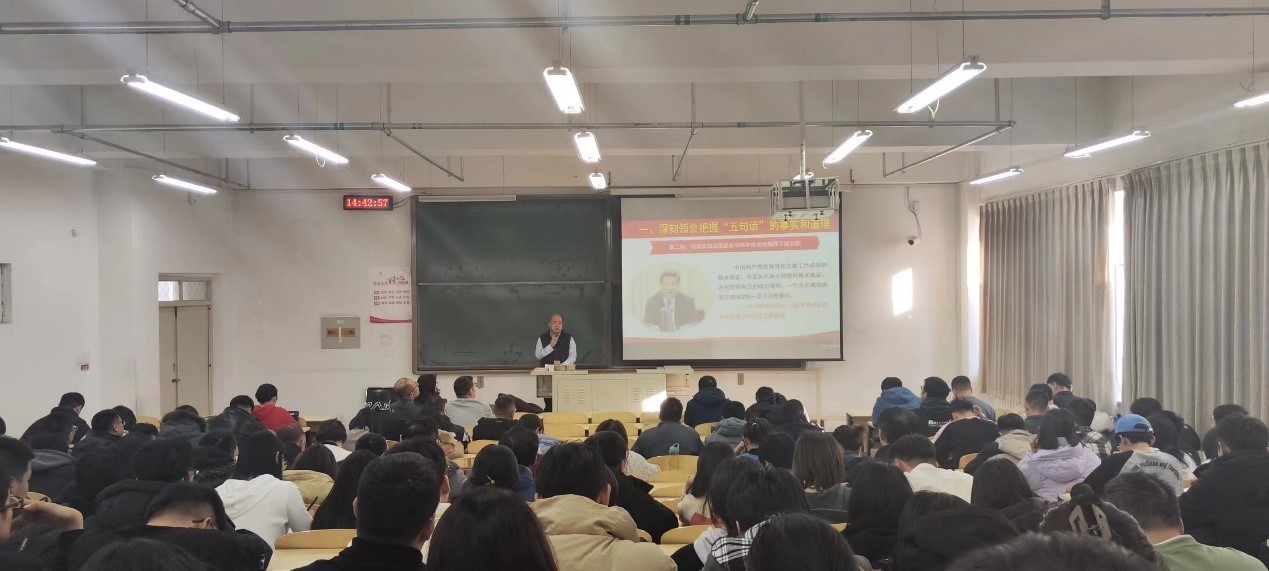 为持续深入学习贯彻习近平总书记对内蒙古的重要指示精神,引导全院师生以强烈的感恩之心和奋进之志抓好《国务院关于推动内蒙古高质量发展奋力书写中国式现代化新篇章的意见》贯彻落实,按照校党委安排部署,11月29日下午,太阳集团tyc9728邀请副校长陈明教授开展“感党恩、听党话、跟党走”主题宣讲,学院党委书记张利敏主持宣讲,学院教师、学生代表聆听宣讲。