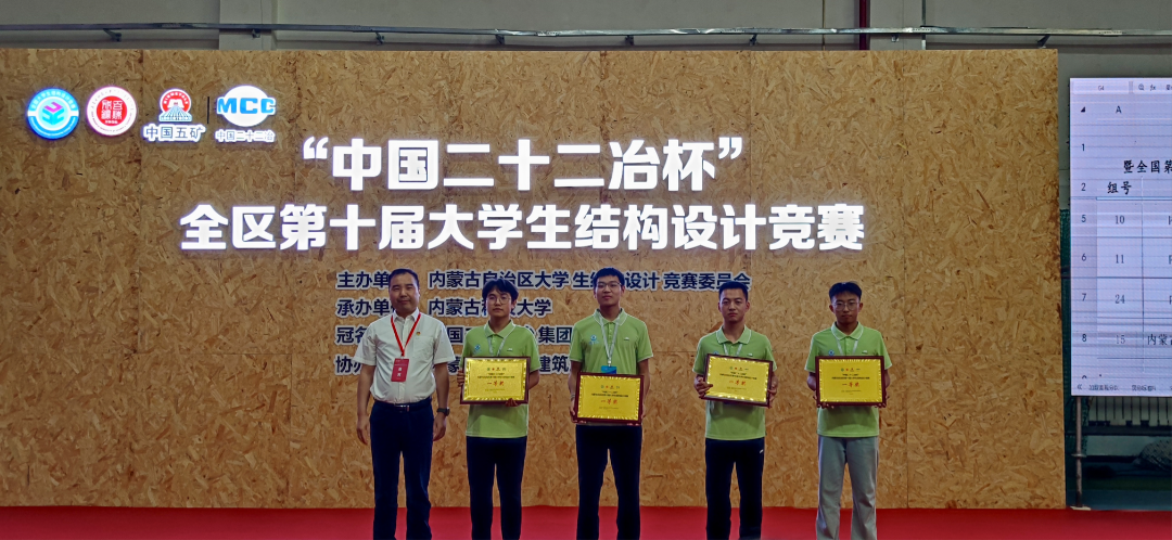 6月21日-23日,由内蒙古自治区大学生结构设计竞赛委员会主办、9728太阳集团承办的“中国二十二冶杯”内蒙古自治区第十届大学生结构设计竞赛在我校举行。本届共有来自内蒙古大学、内蒙古工业大学等8所高校的25支代表队参赛。太阳集团tyc9728四支代表队发挥出色,分别获得四个一等奖中的前三名、以及一个二等奖,属历史以来最好的省赛成绩。