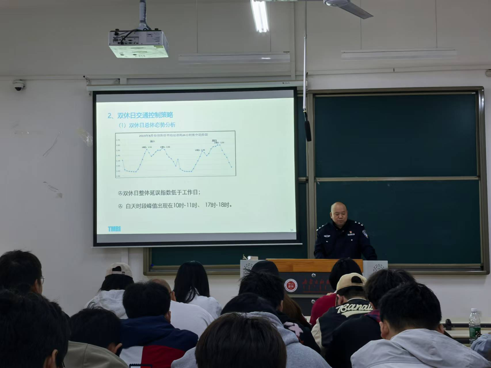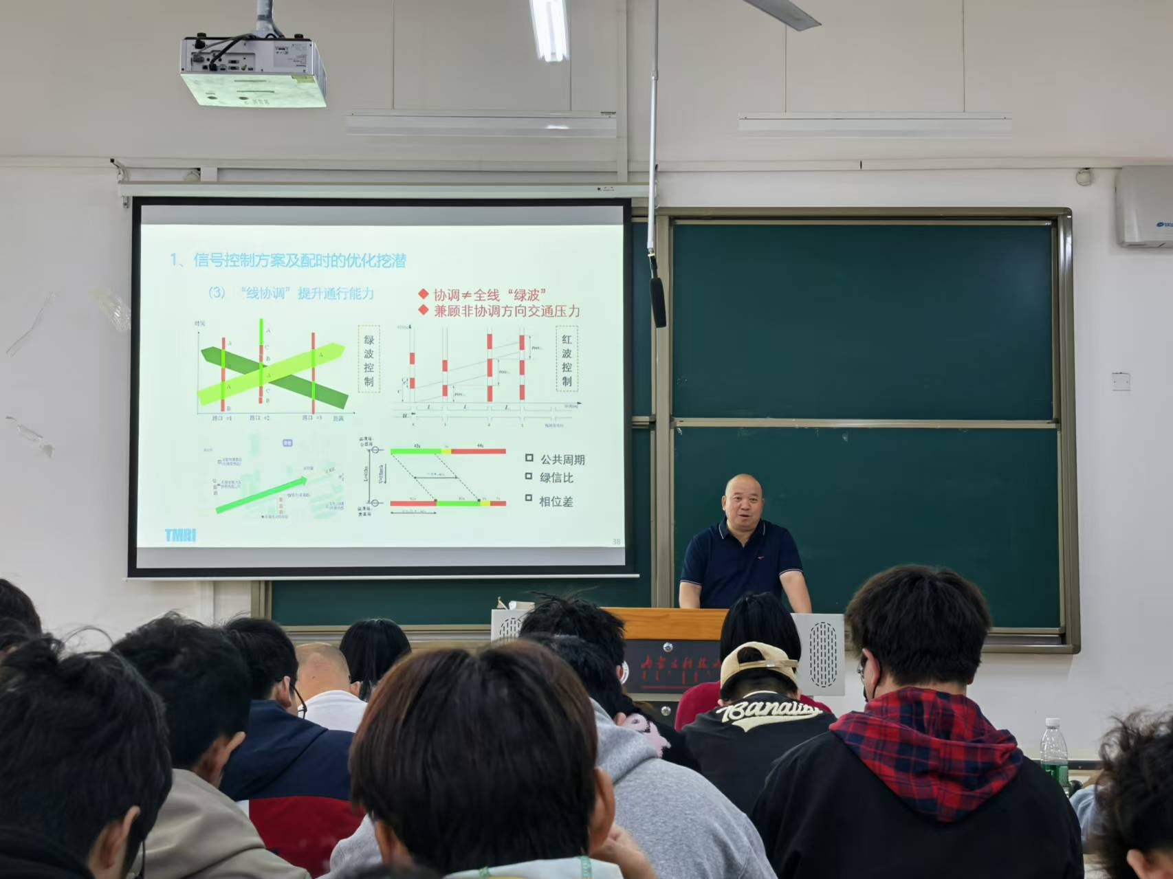 为深度贯彻以高水平产教融合促进高质量人才培养,2024年9月27日,我院交通工程专业校警、校企共建课《交通管理与控制》邀请包头市交通管理支队荣生伟警官、包头市惠安科技有限公司侯明工程师来校做交通信号控制与优化的课程讲座。