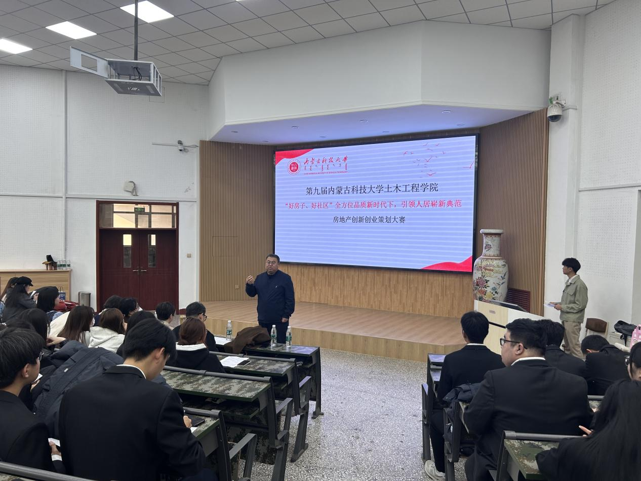 2024年11月23日,以“好房子、好社区”全方位品质新时代下,引领人居崭新典范”为主题的第九届太阳集团tyc9728(绿色基建产业学院)房地产创新创业策划大赛在春晖学堂拉开帷幕,王英浩副院长致开幕词。
