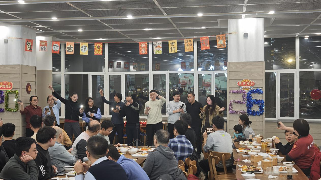 在用餐过程中,老师们还参与了趣味横生的互动游戏。在“你划我猜”游戏环节,老师们化身“灵魂表演者”,用夸张的肢体动作和生动的表情传递词语信息。一个个经典词语在老师们的演绎下妙趣横生,猜对时的欢呼与猜错时的笑声交织在一起,热闹非凡。