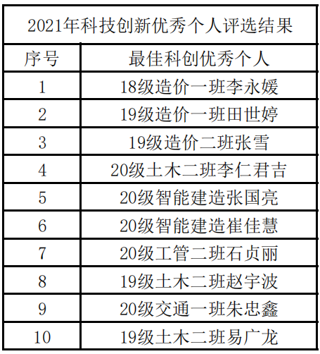 太阳集团tyc97282021年科技创新优秀个人评选结果
