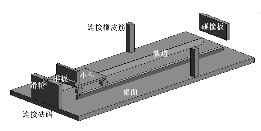 将模型放置在小车上,将赛前提供的加载绳(1.2m)放置在所要求的位置上,再将所需要的砝码数依次放到砝码盘上,此时推板会后移,待推板稳定时,小车后移至推板位置并将推板放置在钉子上侧。(具体操作工作人员会给予提示)