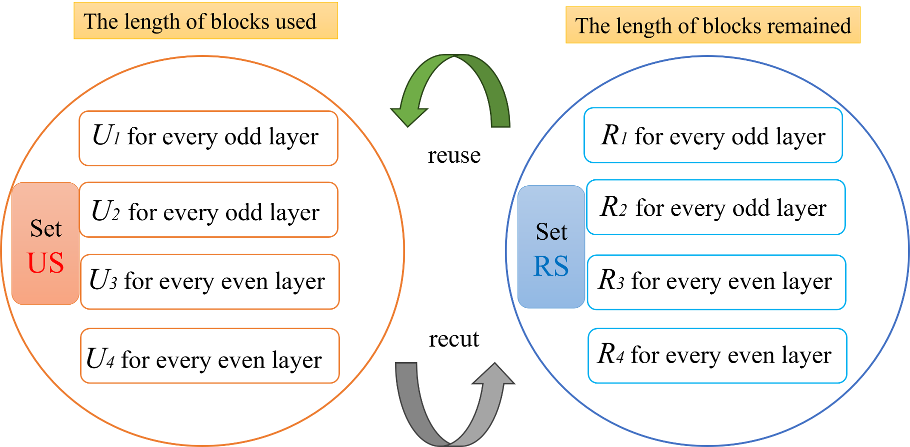 图2.已用长度集(US)和剩余长度集(RS)