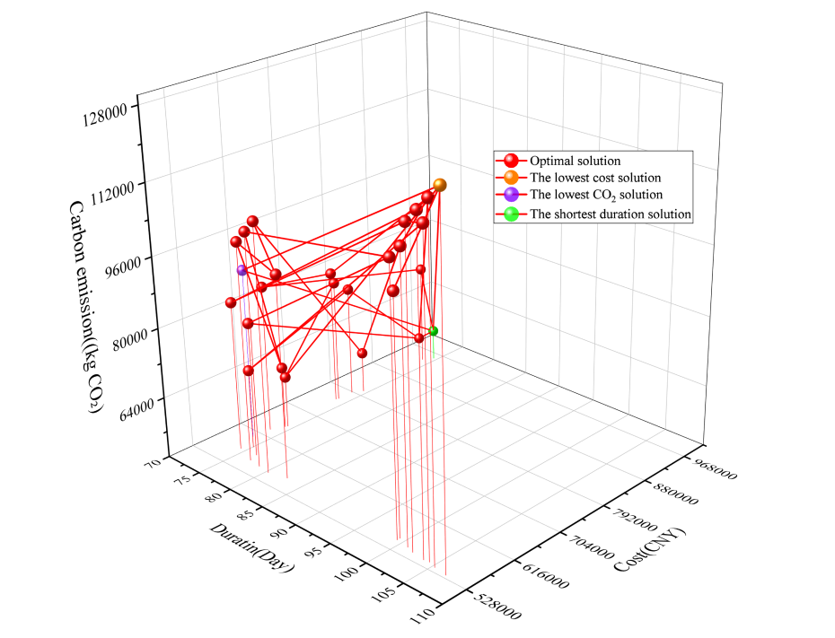 该研究构建了传统能源机械与新能源机械的多目标优化协同调动模型,采用 ACEMO 方法生成一组帕累托最优解,并利用 TOPSIS 技术确定最有利的折中方案,这种方法能够适应实际工程复杂的权衡决策,为项目经理、施工企业、政策制定者及研究人员在项目的施工机械多目标优化调度决策方面提供了重要参考。