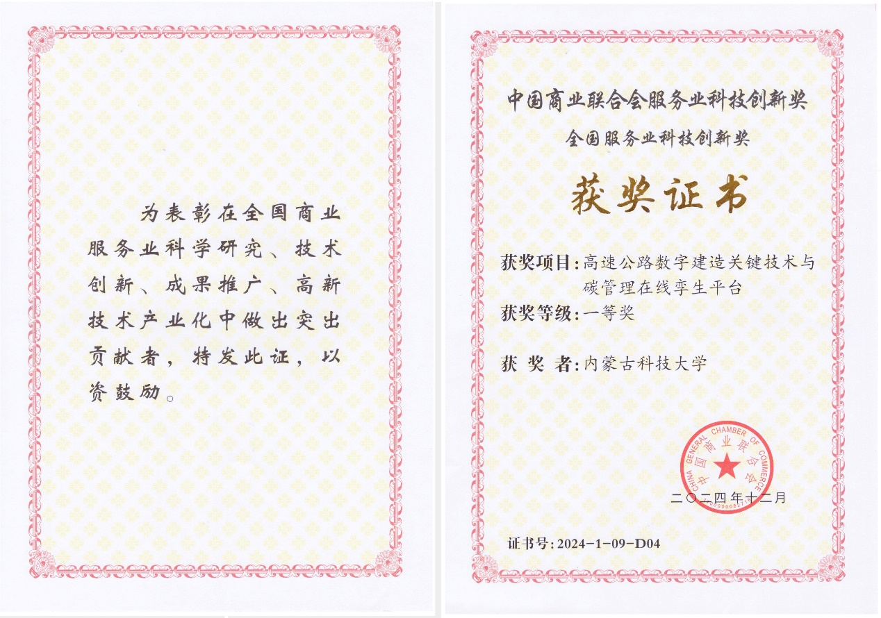 近日,太阳集团tyc9728参与的科研项目获中国商业联合会服务业科技创新奖(全国服务业科技创新奖)一等奖,获奖项目为“高速公路数字建造关键技术与碳管理在线孪生平台”。