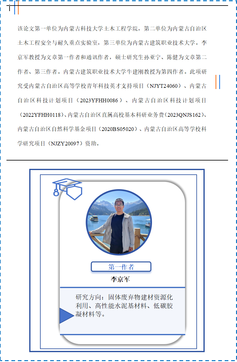 土木成果动态——工业与城市固体废弃物建材资源化利用团队李京军教授研究成果在Construction and Building Materials上发表