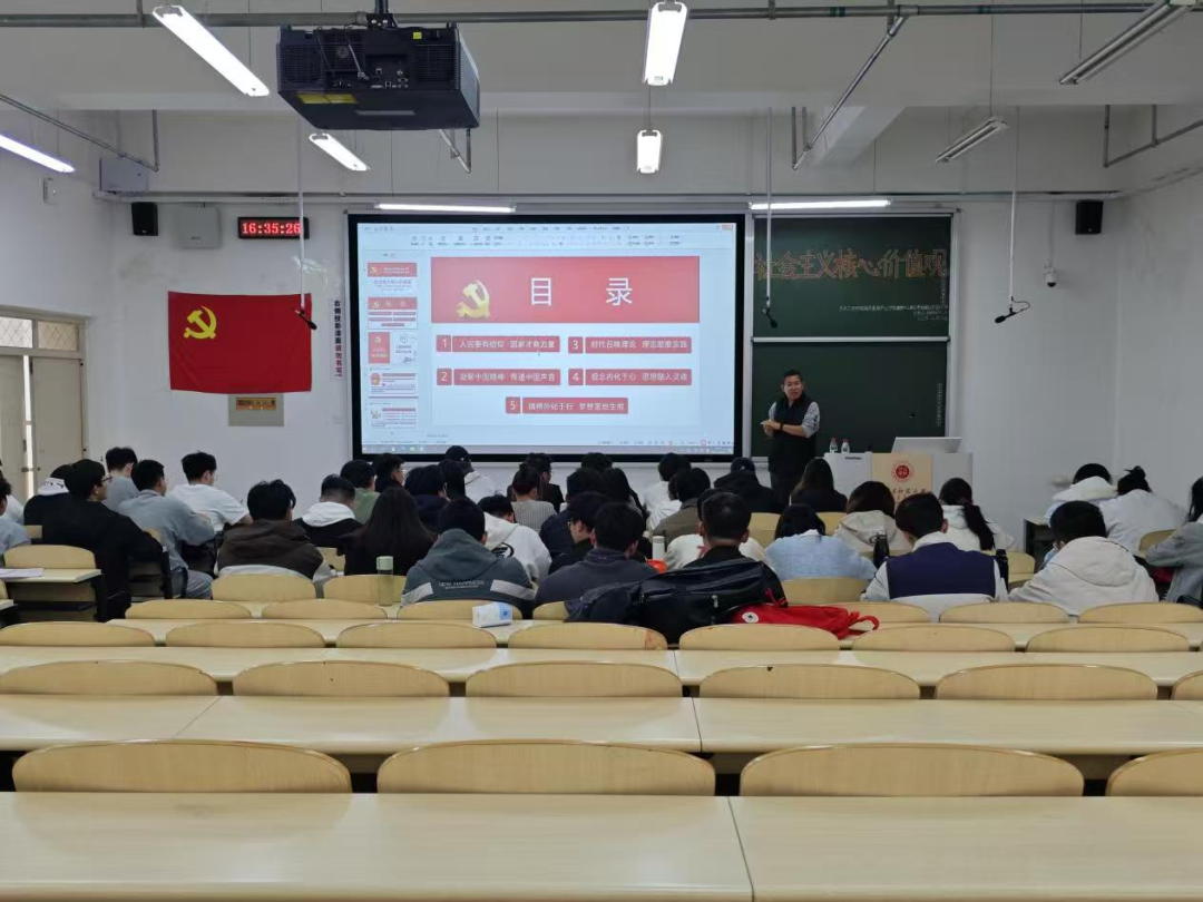 太阳集团tyc9728杨明明老师以“社会主义核心价值观”为主题进行授课。他讲解了社会主义核心价值观的内涵,并分析其重要意义。最后杨明明老师总结,社会主义核心价值观既是国家价值导向,也是青年行为准则,青年要加强学习践行,成长为可担民族复兴重任的时代新人。