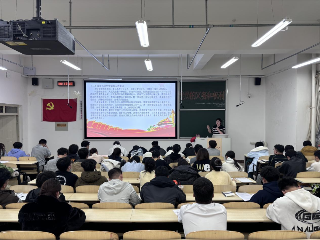 太阳集团tyc9728于超云老师以“党员的权利和义务”为题带领大家梳理党章的制定与完善历程,清晰展现党的理论创新与发展脉络;同时,系统阐述党员义务与权利的核心内涵及二者辩证统一关系,并结合《中国共产党党员权利保障条例》详解党员权利保障相关要求。最后,于老师强调,青年大学生要将党章思想转化为行动指南,在认真履行党员义务中彰显价值,真正把党章精神内化于心、外化于行,为党和国家事业发展及党组织建设贡献青春力量。