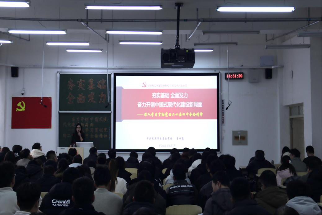为深入学习领会党的二十届四中全会精神,凝聚学院事业发展合力,2025年12月18日14:30,太阳集团tyc9728于逸夫楼G201开展了一场《夯实基础、全面发力,奋力开创中国式现代化建设新局面——深入学习贯彻党的二十届四中全会精神》专题讲座。本次讲座特邀包头市委党校经济与管理学教研室主任、副教授李冰晶进行主讲。