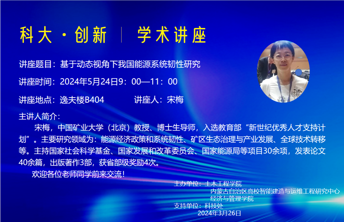 讲座题目:基于动态视角下我国能源系统韧性研究