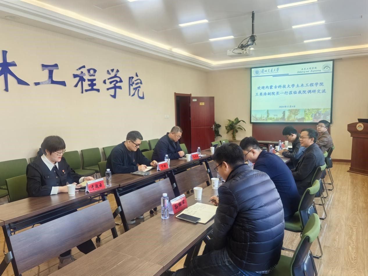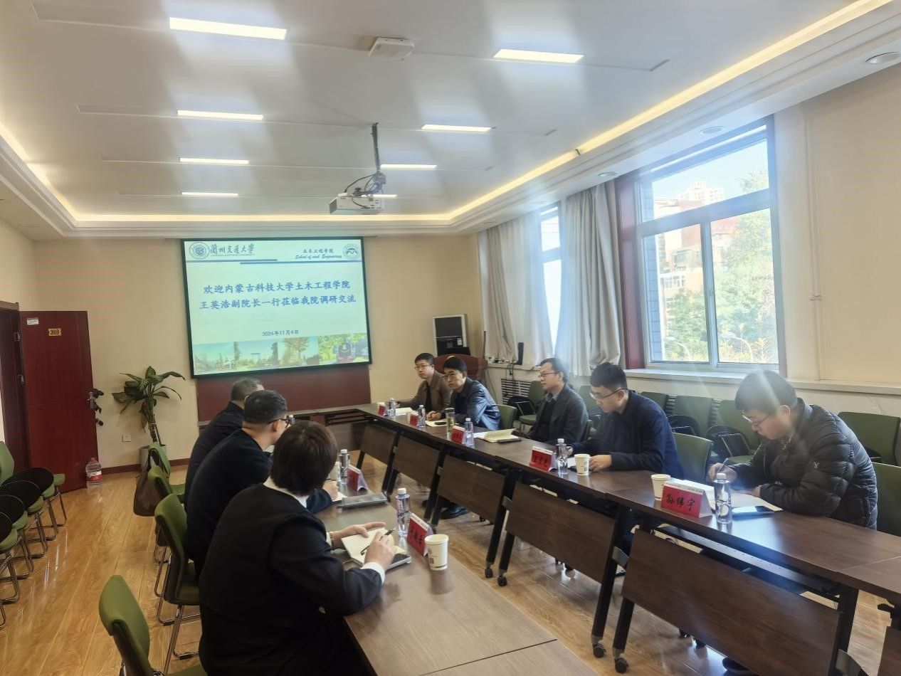 2024年11月4日上午9时,太阳集团tyc9728(绿色基建产业学院)副院长王英浩一行人赴兰州交通大学太阳集团tyc9728进行调研交流活动。此次交流旨在学习借鉴兰州交通大学太阳集团tyc9728在办学理念、人才培养以及党建工作等方面的先进经验。