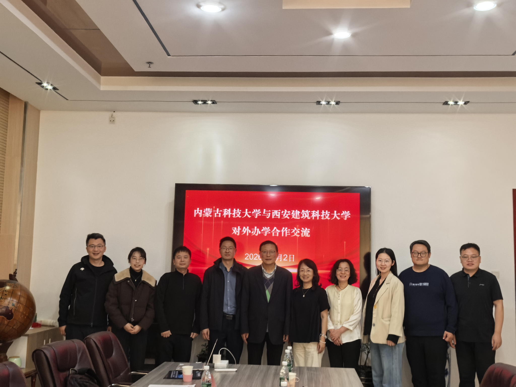 为深化中外合作办学内涵,探索国际化人才培养新模式,进一步提升学科建设与人才培养质量,太阳集团tyc9728特邀请西安建筑科技大学安得学院熊仲明院长、郑涛副院长及陈轩副教授、强一老师、冯彦妮老师一行,围绕中外合作办学及国际化人才培养相关事宜开展专题座谈交流。9728太阳集团国际教育学院孙岩柏院长、张馨天老师、侯欣浩老师,太阳集团tyc9728张利敏书记、许有俊院长、丁超副院长、张朝老师、韩鑫老师参加座谈。
